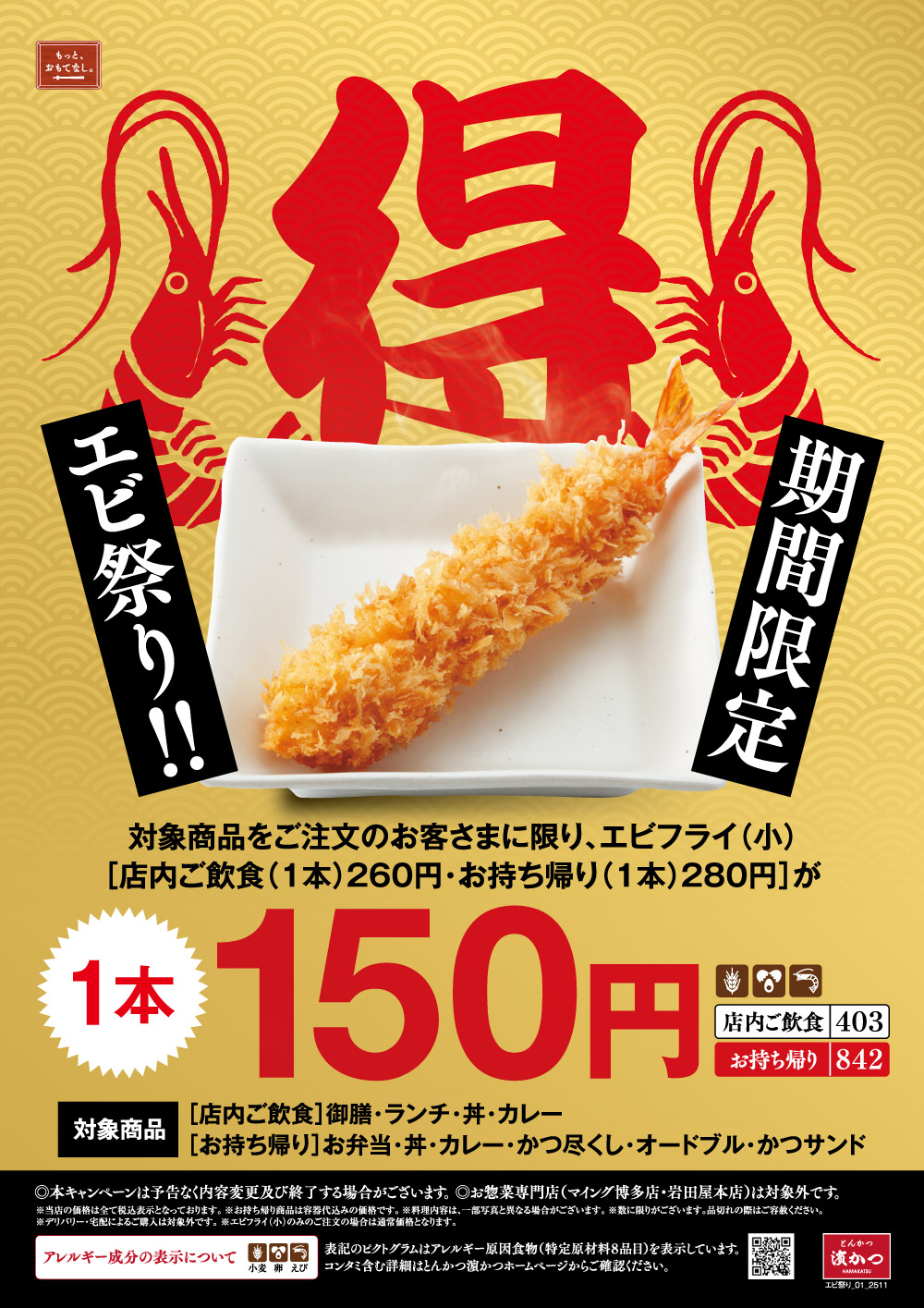 【期間限定】エビ祭り TOP > メニュー > 地域・店舗限定メニュー > 【期間限定】エビ祭り ※惣菜店舗除く全店での販売となります。 ※数量限定商品となります。 販売店舗 全店(惣菜店2店舗は除く) お近くの店舗はこちら