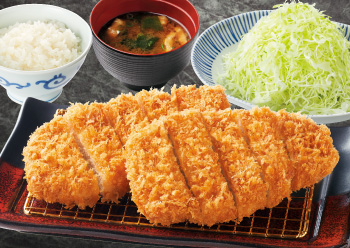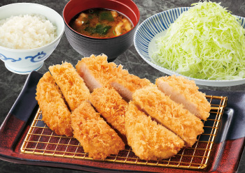 TOP > メニュー > 定番とんかつ 良質な肉の旨味が堪能できる定番とんかつ ロースかつ御膳 特盛りロースかつ御膳 ヒレかつ御膳(3枚) 濵かつ三種御膳 ロースとヒレかつ御膳 ※一部店舗にて取り扱いのないメニューがある場合がございます。 ※御膳には、ごはん・味噌汁・キャベツ・お漬物がつき、おかわりできます。 ※地域により料理内容・食器・価格が異なる商品がございます。 ※店舗により一部販売をしていない商品がございます。 ※使用する野菜は季節等の事情により、予告なく変更することがあります。