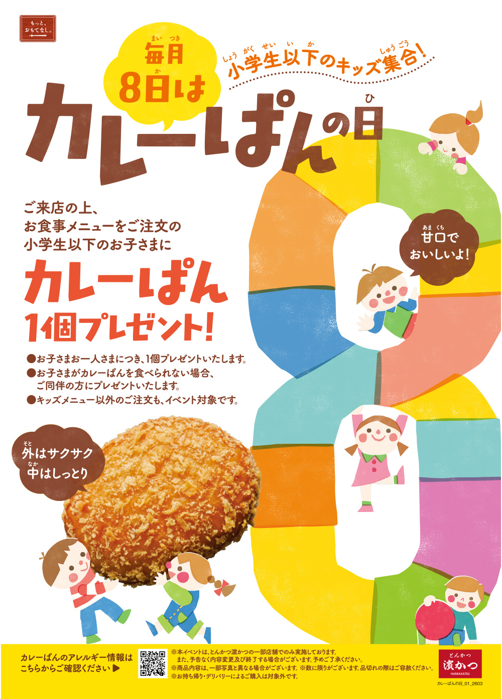 ニュースリリース TOP > ニュースリリース> 【小学生以下のお子さま限定】毎月8日はカレーぱんの日!店舗でお食事メニューをご注文でカレーぱん1個プレゼント! 【小学生以下のお子さま限定】毎月8日はカレーぱんの日!店舗でお食事メニューをご注文でカレーぱん1個プレゼント! ニュースリリースに戻る 2026年 2025年 2024年 2023年 2022年 2021年 2020年 2019年 2018年 2017年 2016年 2015年 2014年 2013年 2012年 2011年